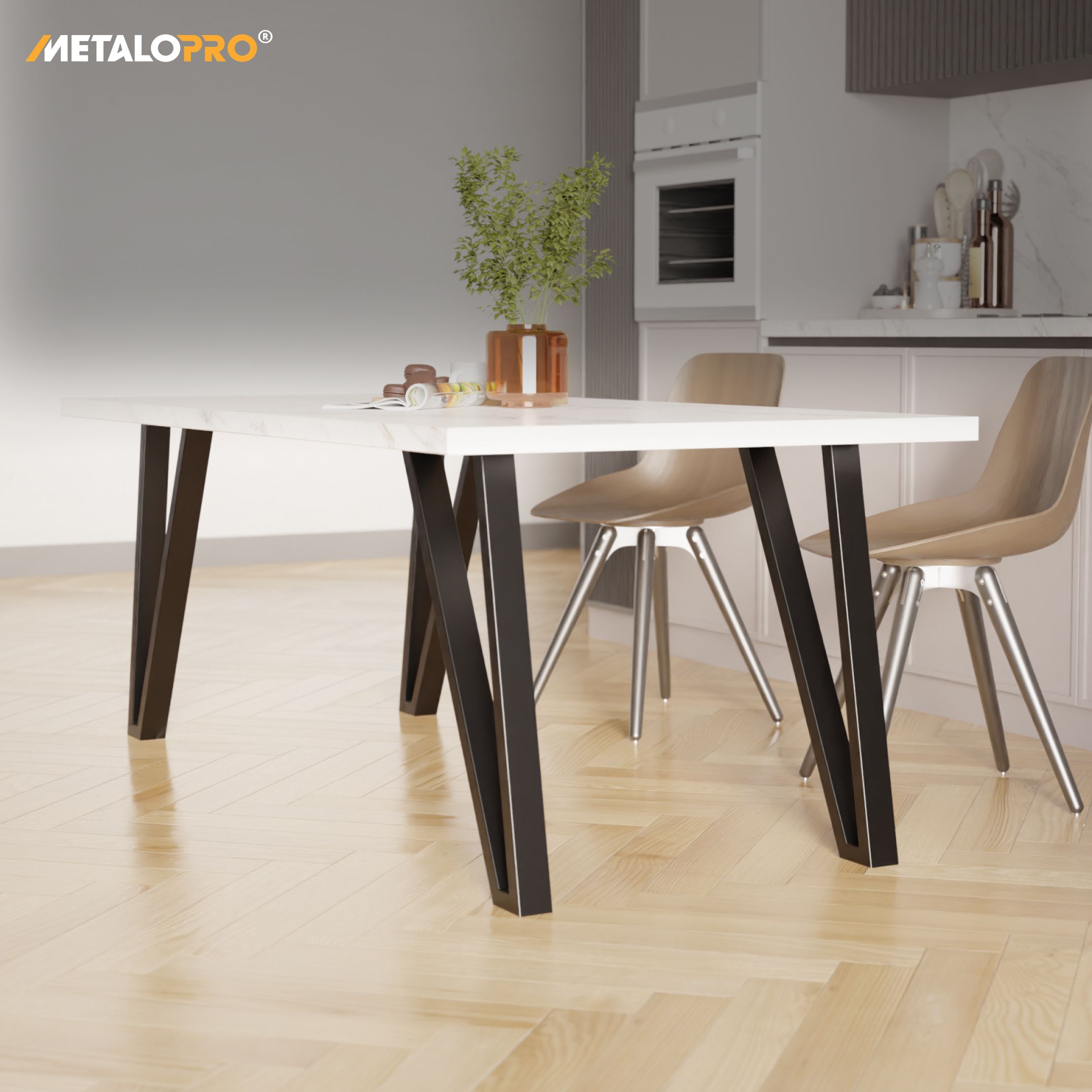 Nuestras patas de mesa están hechas de acero de alta calidad DC01 y S235, lo que garantiza su resistencia y durabilidad. Usamos perfiles con un grosor de 1,5 mm a 2 mm, lo que proporciona la combinación ideal de estabilidad y elegancia.